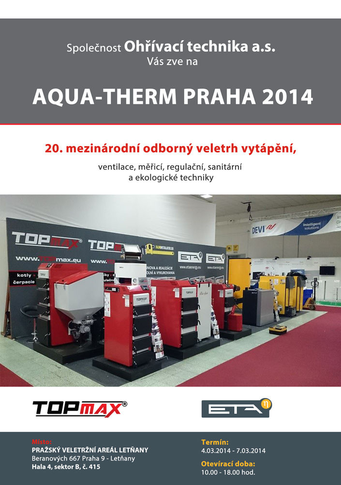 Společnost Ohřívací technika a.s. Vás zve na AQUA-THERM PRAHA 2014 - 20. mezinárodní oborový veletrh vytápění, ventilace, měřicí, regulační, sanitární a ekologické techniky...